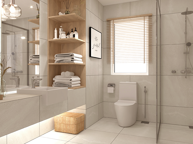 👉 Giải pháp an toàn mà tinh tế: Hãy chọn gạch màu trung tính như xám, trắng, be.