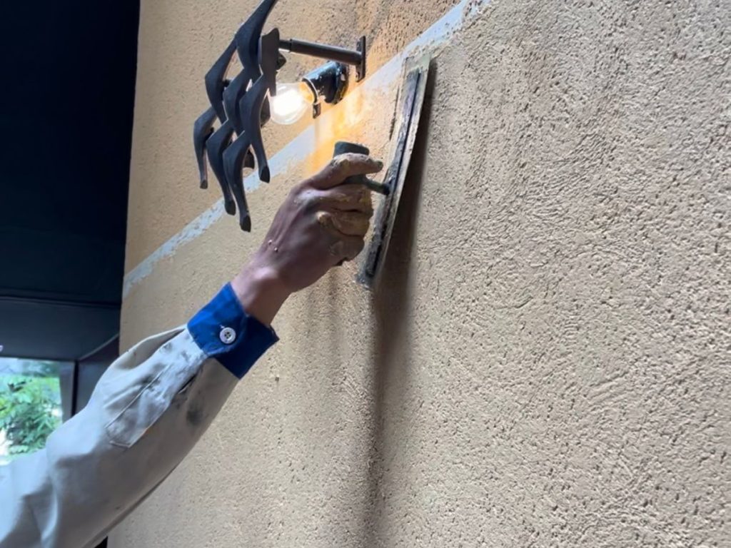 Đứng cách tường khoảng 2–3m, quan sát ở nhiều góc ánh sáng khác nhau. Một bề mặt đạt chuẩn sẽ không loang màu, không có vệt chổi, vân tự nhiên và đồng đều, phản ánh đúng hiệu ứng thiết kế ban đầu.